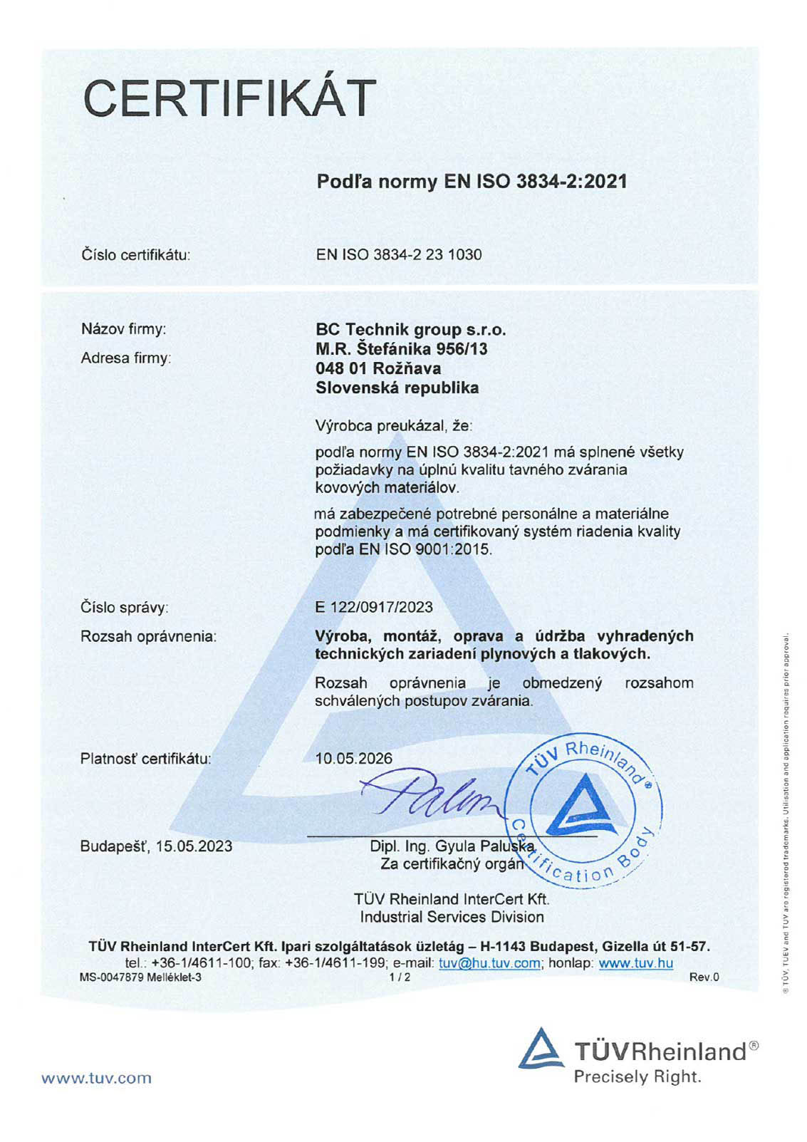 • Kontrola zvarových spojov- vizuálne, tlakové a testnostné skúšky, úradné skúšky