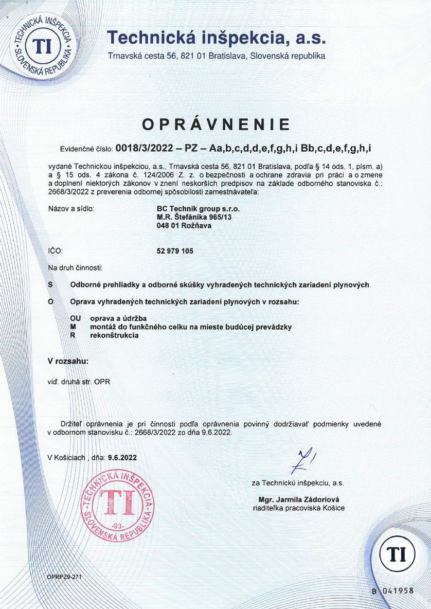 Oprava vyhradených technických zariadení plynových v rozsahu: