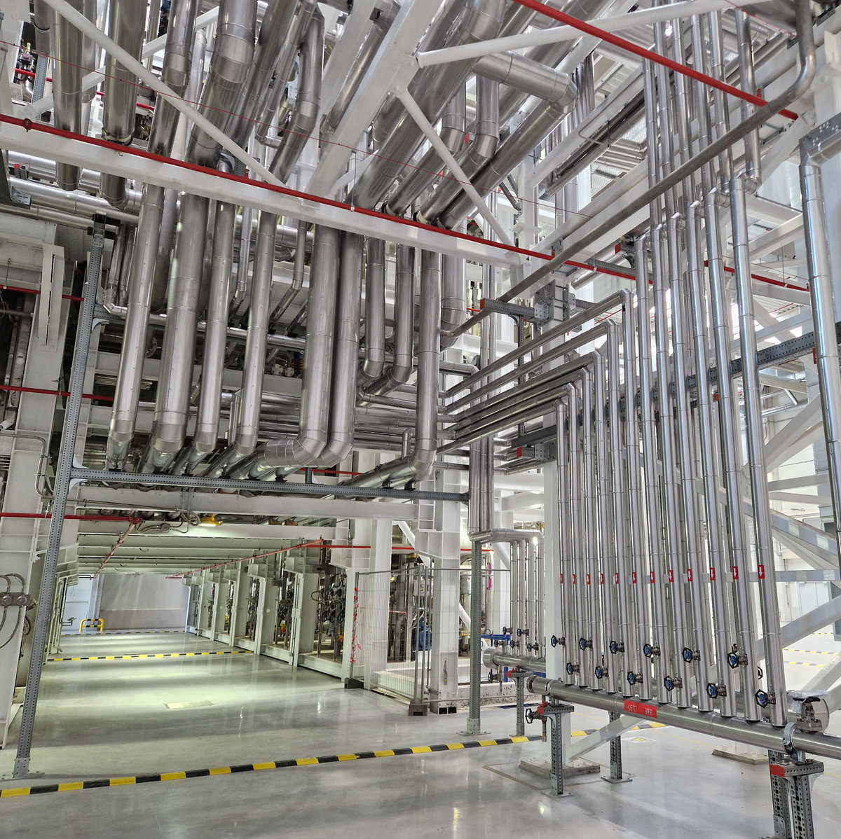 Kompletná dodávka a montáž nerezových potrubí, podpery potrubí, armatúry a ventilov DN15–DN80 s celkovou dĺžkou cca 5 km.