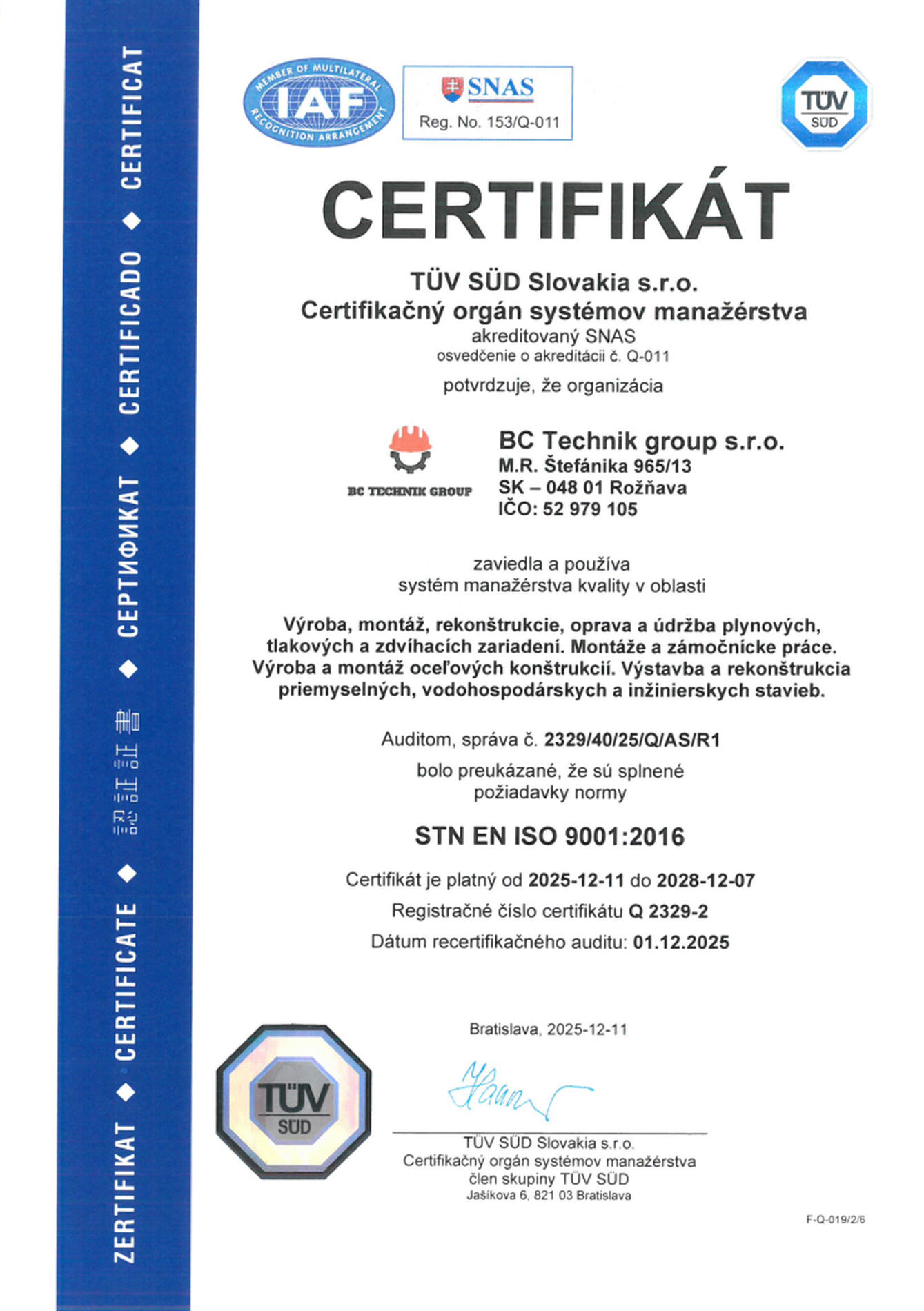 • Výroba, montáž, rekonštrukcie, oprava a údržba plynových, tlakových a zdvíhacích zariadení.