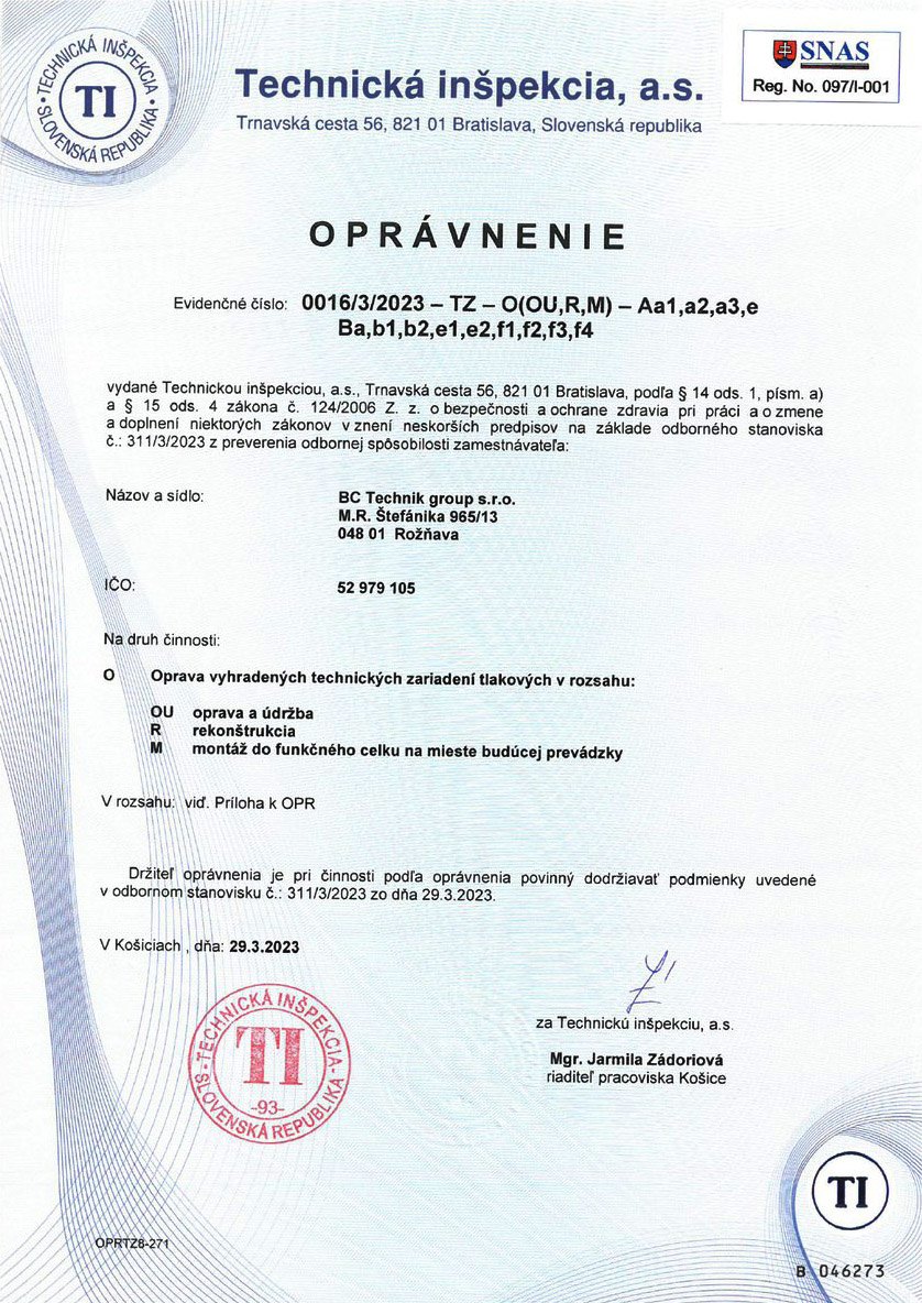 Oprava vyhradených technických zariadení tlakových v rozsahu