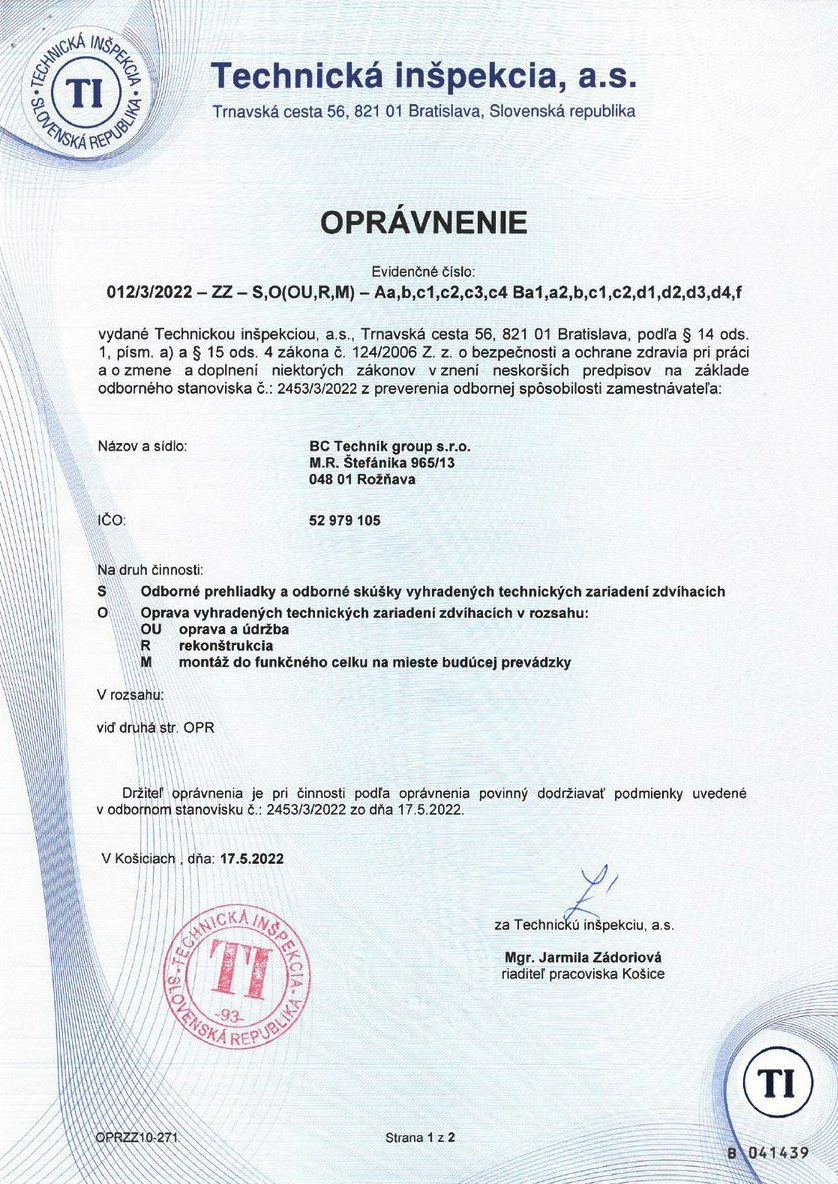 Oprava vyhradených technických zariadení zdvíhacích v rozsahu: